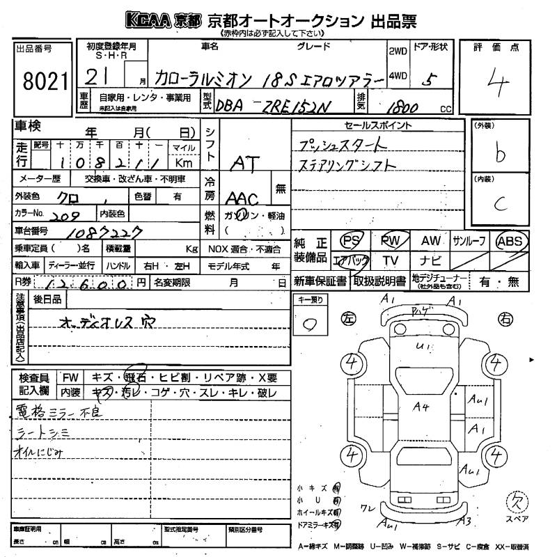 Все аукционы TOYOTA COROLLA RUMION