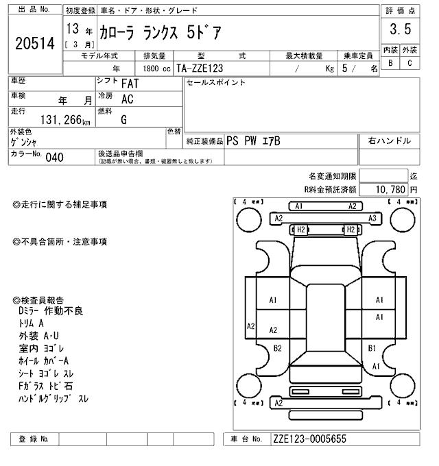 TOYOTA COROLLA RUNX - лот 20514