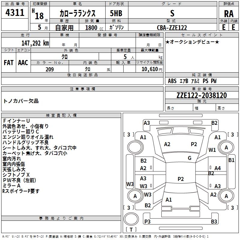 TOYOTA COROLLA RUNX S - лот 4311