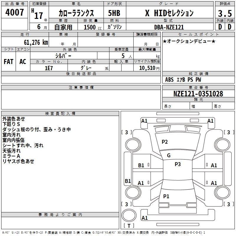 TOYOTA COROLLA RUNX X HID SELECTION - лот 4007