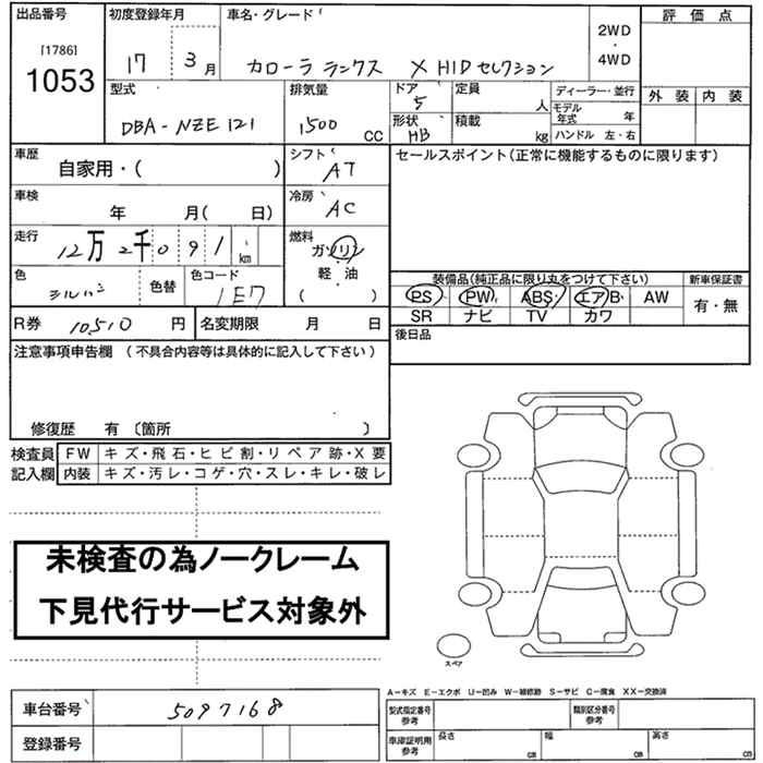 TOYOTA COROLLA RUNX X HID SELECTION - лот 1053