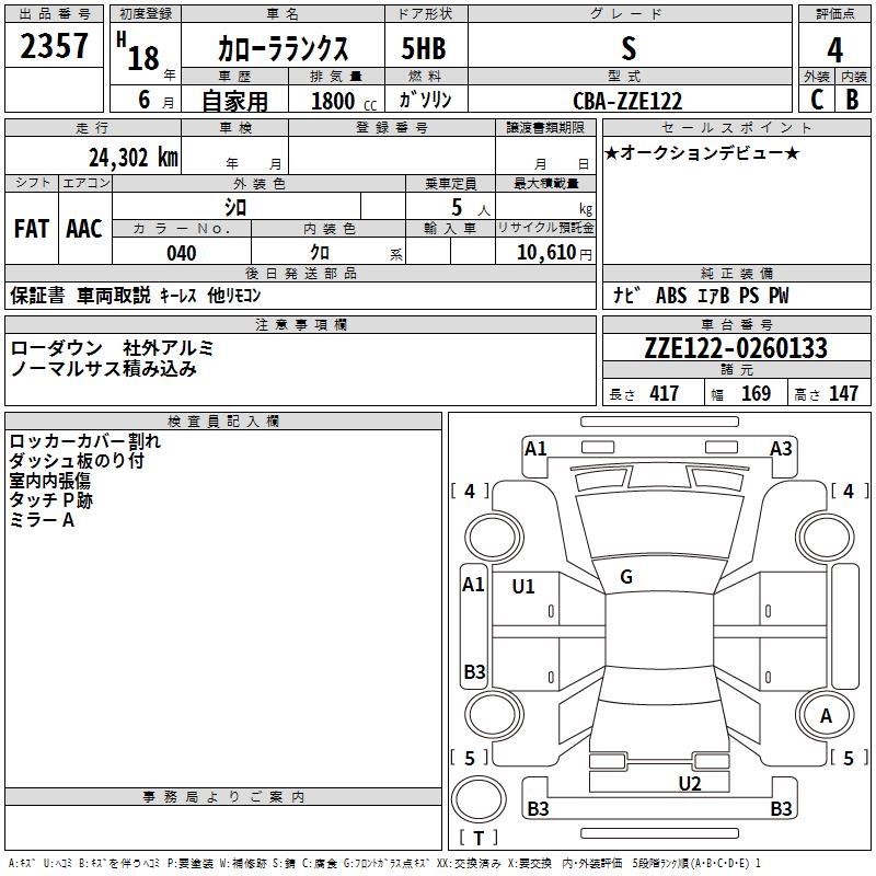 TOYOTA COROLLA RUNX S - лот 2357