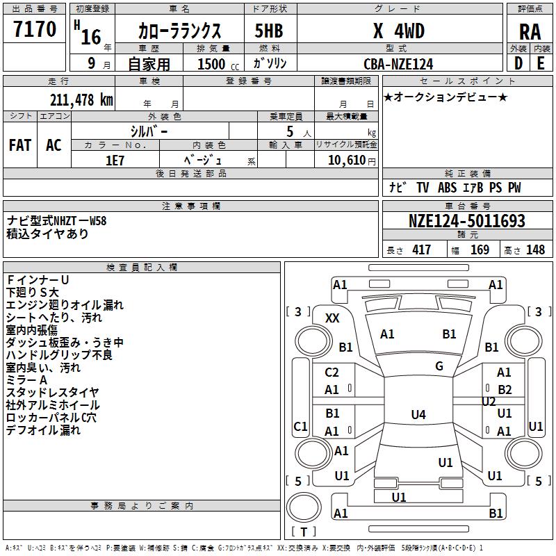 TOYOTA COROLLA RUNX X 4WD - лот 7170