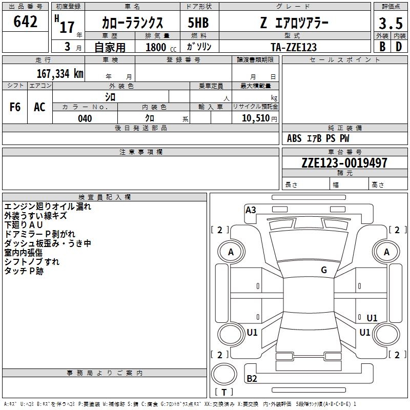TOYOTA COROLLA RUNX Z AERO TOURER - лот 642