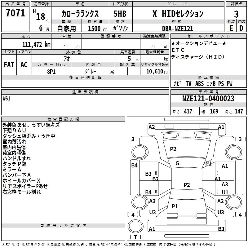 TOYOTA COROLLA RUNX X HID SELECTION - лот 7071