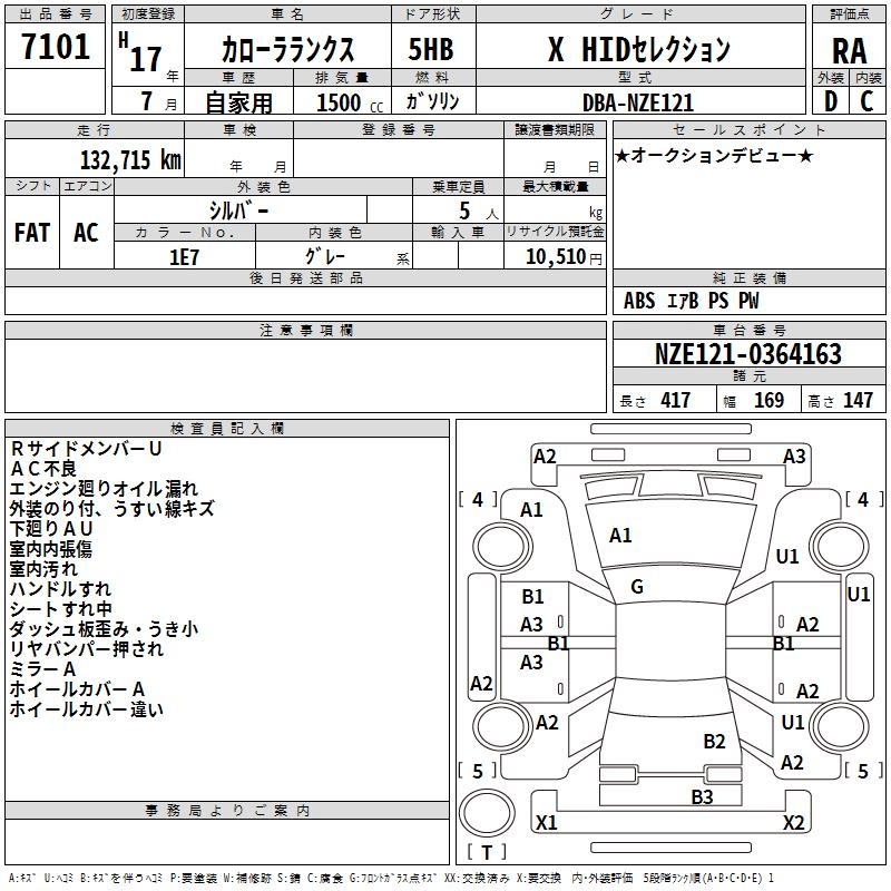 TOYOTA COROLLA RUNX X HID SELECTION - лот 7101