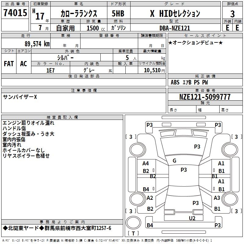 TOYOTA COROLLA RUNX X HID SELECTION - лот 74015