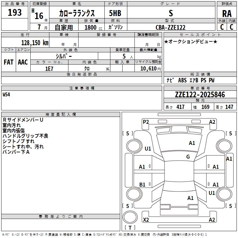TOYOTA COROLLA RUNX S - лот 193