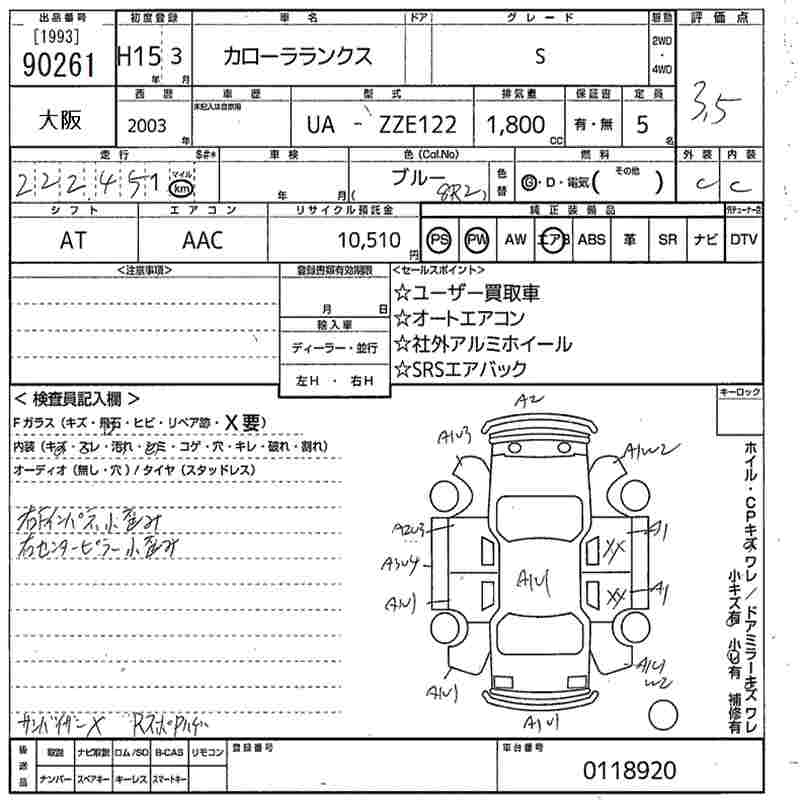 TOYOTA COROLLA RUNX S - лот 90261