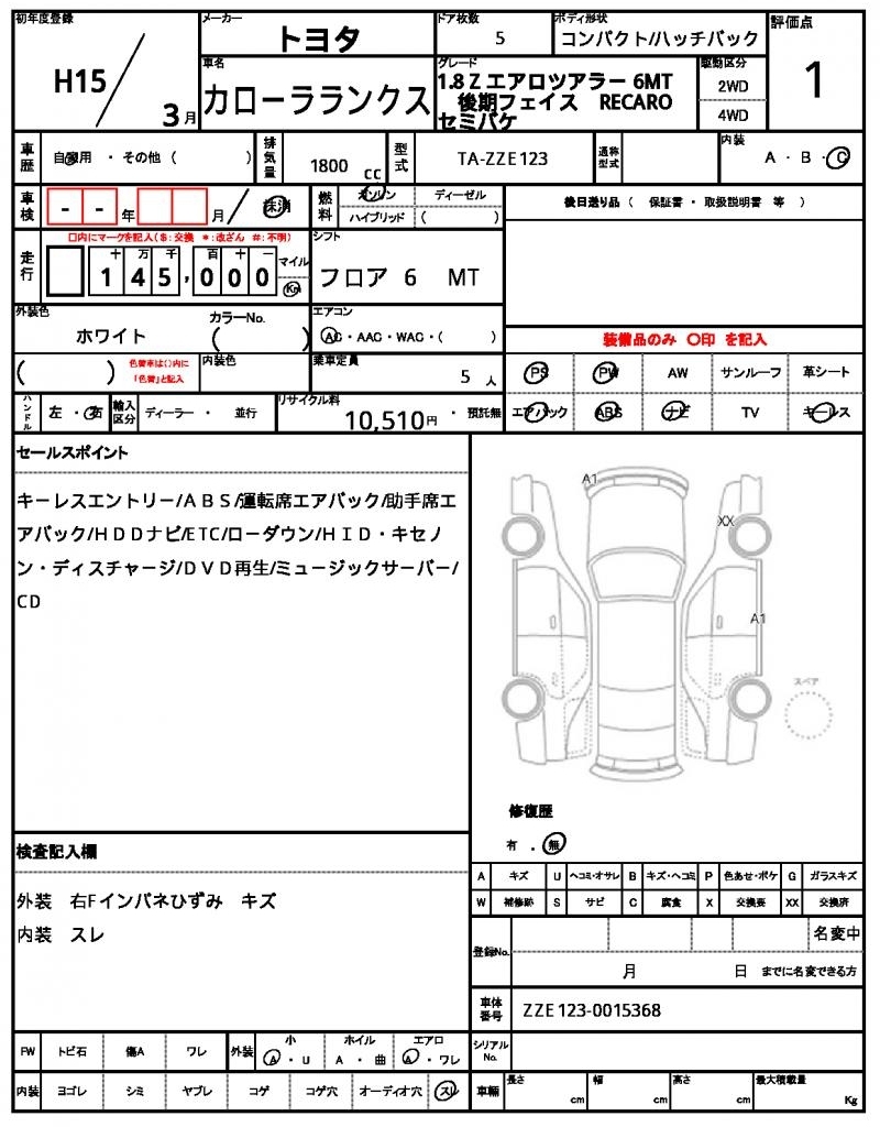 TOYOTA COROLLA RUNX - лот 9582