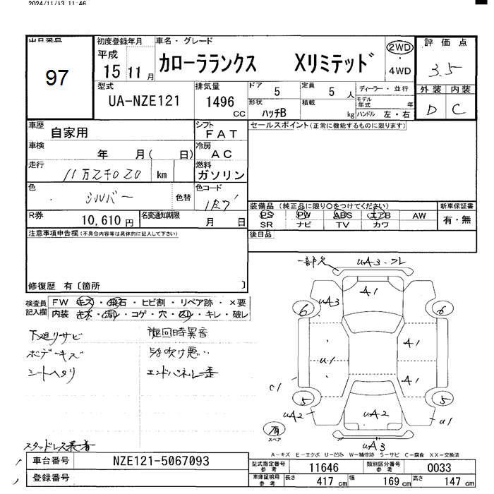 TOYOTA COROLLA RUNX - лот 97
