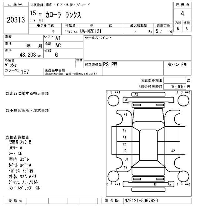 TOYOTA COROLLA RUNX - лот 20313