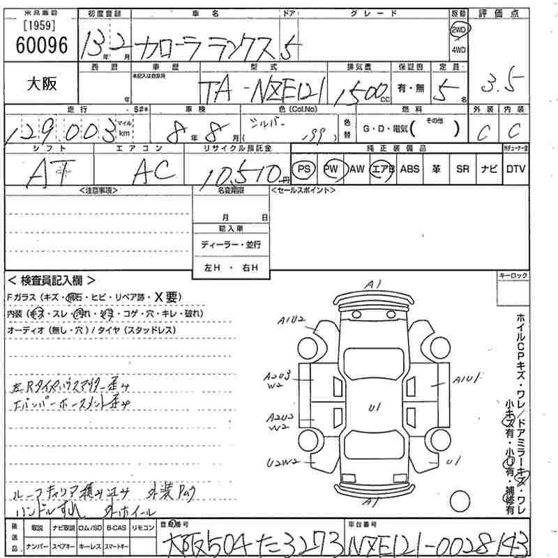 TOYOTA COROLLA RUNX - лот 60096
