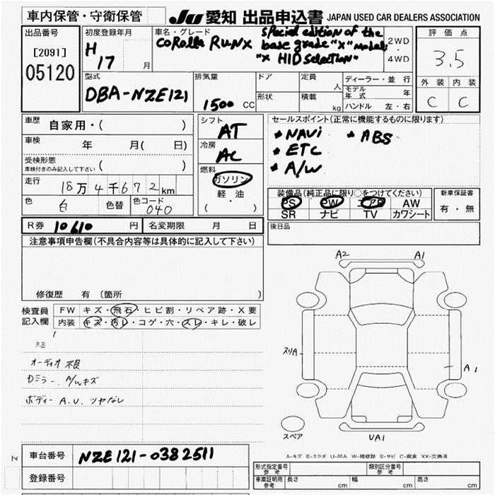 TOYOTA COROLLA RUNX - лот 5120