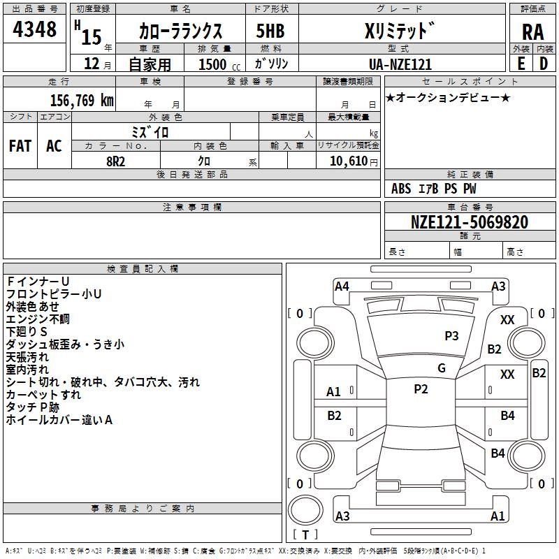 TOYOTA COROLLA RUNX - лот 4348