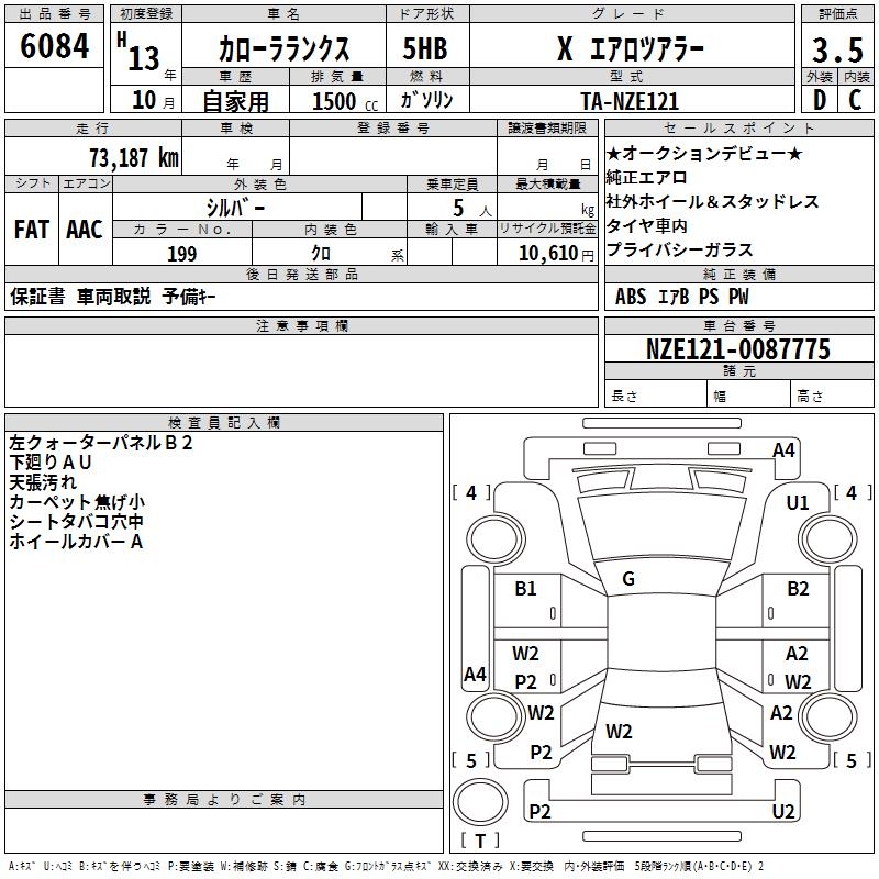 TOYOTA COROLLA RUNX - лот 6084