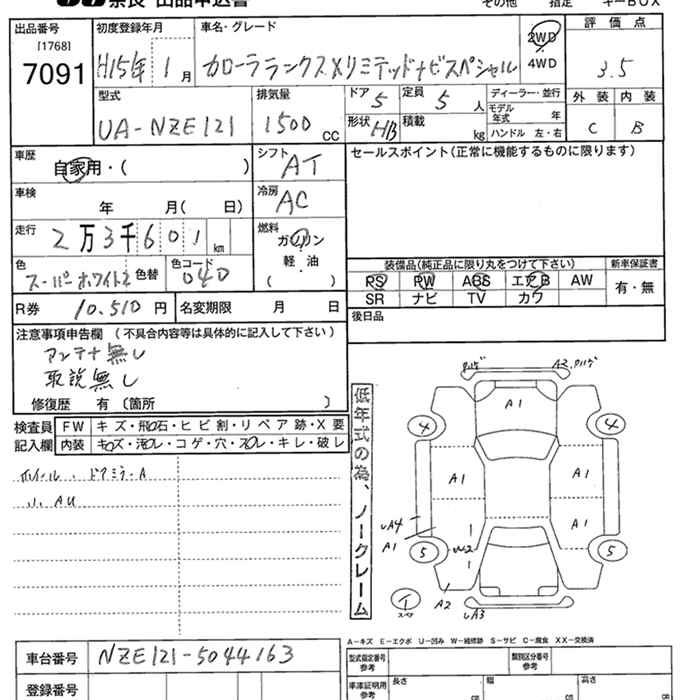 TOYOTA COROLLA RUNX - лот 7091