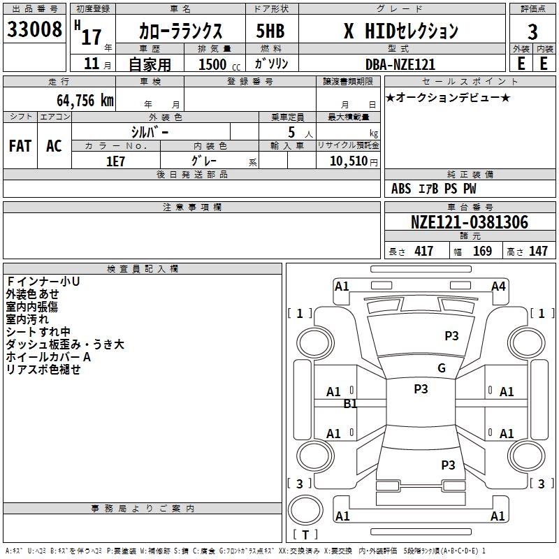 TOYOTA COROLLA RUNX X HID SELECTION - лот 33008