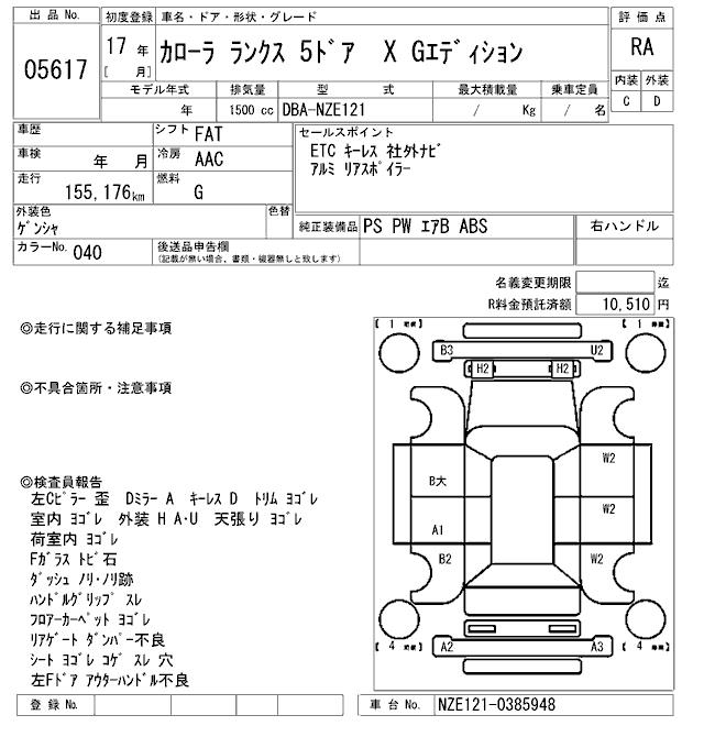 TOYOTA COROLLA RUNX X G EDITION - лот 5617