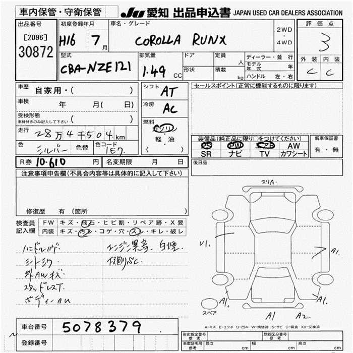 TOYOTA COROLLA RUNX - лот 30872