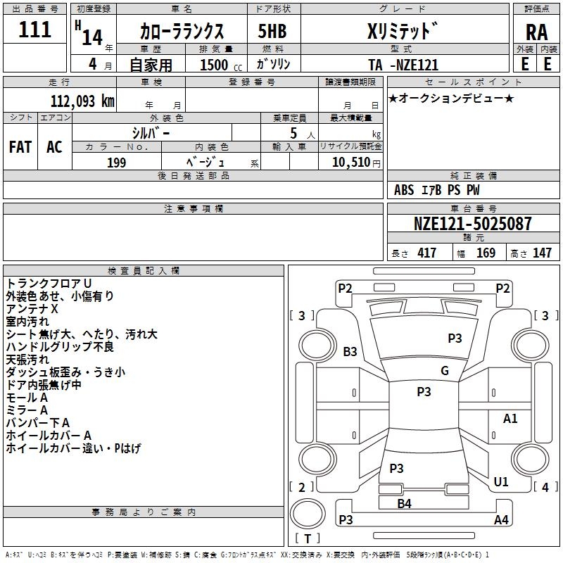 TOYOTA COROLLA RUNX X LIMITED - лот 111