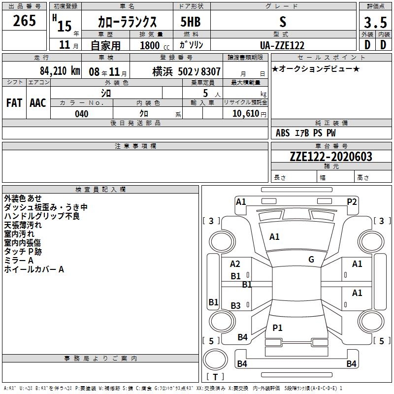 TOYOTA COROLLA RUNX S - лот 265