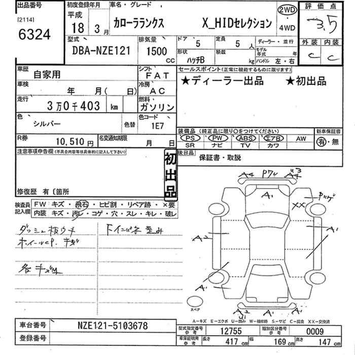 TOYOTA COROLLA RUNX X HID SELECTION - лот 6324