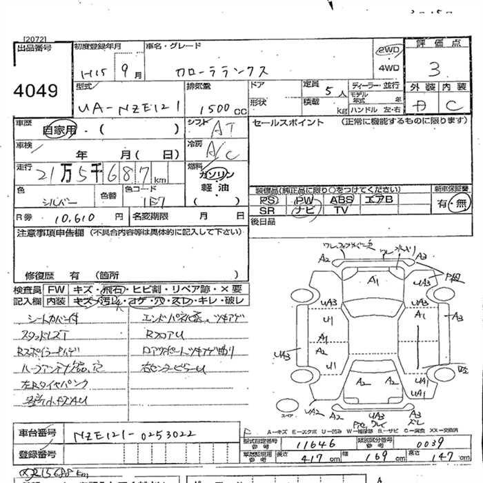 TOYOTA COROLLA RUNX - лот 4049
