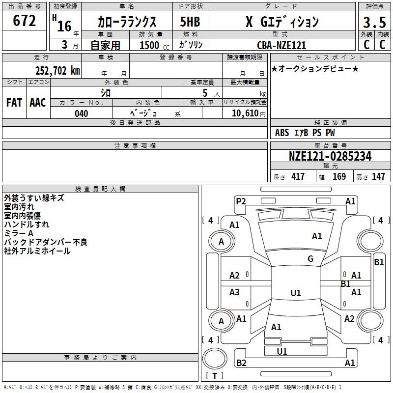 TOYOTA COROLLA RUNX X G EDITION - лот 672
