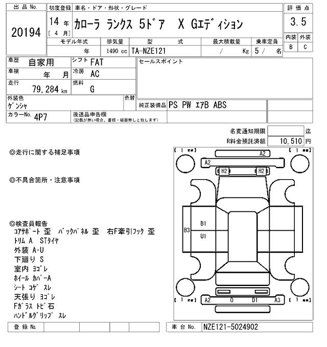TOYOTA COROLLA RUNX X G EDITION - лот 20194