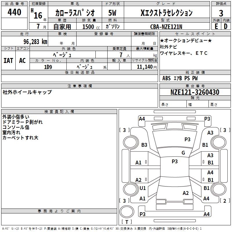 TOYOTA COROLLA SPACIO X EXTRA SELECTION - лот 440