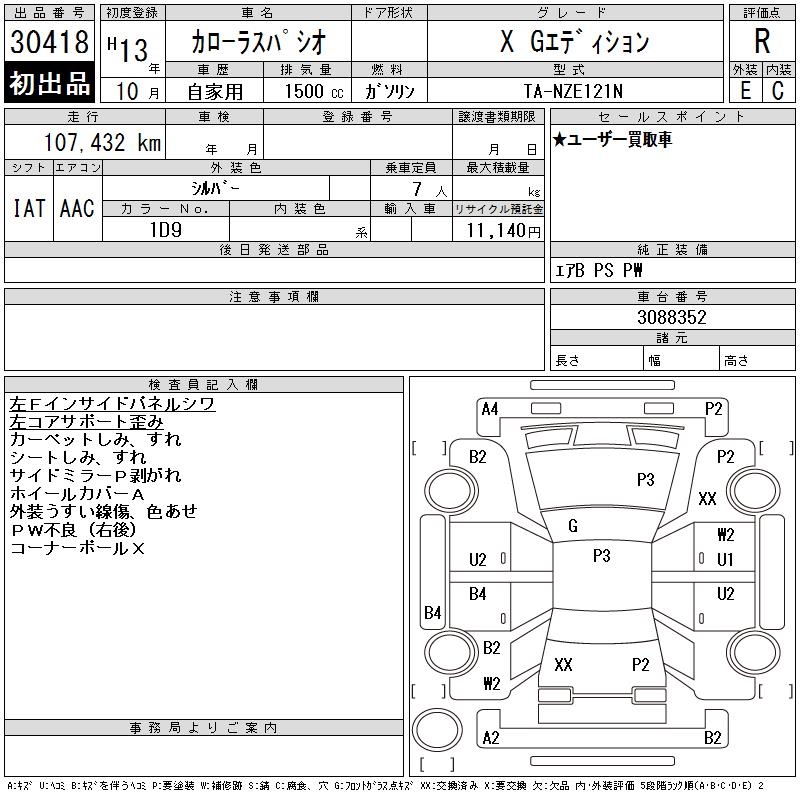 TOYOTA COROLLA SPACIO X G EDITION - лот 30418