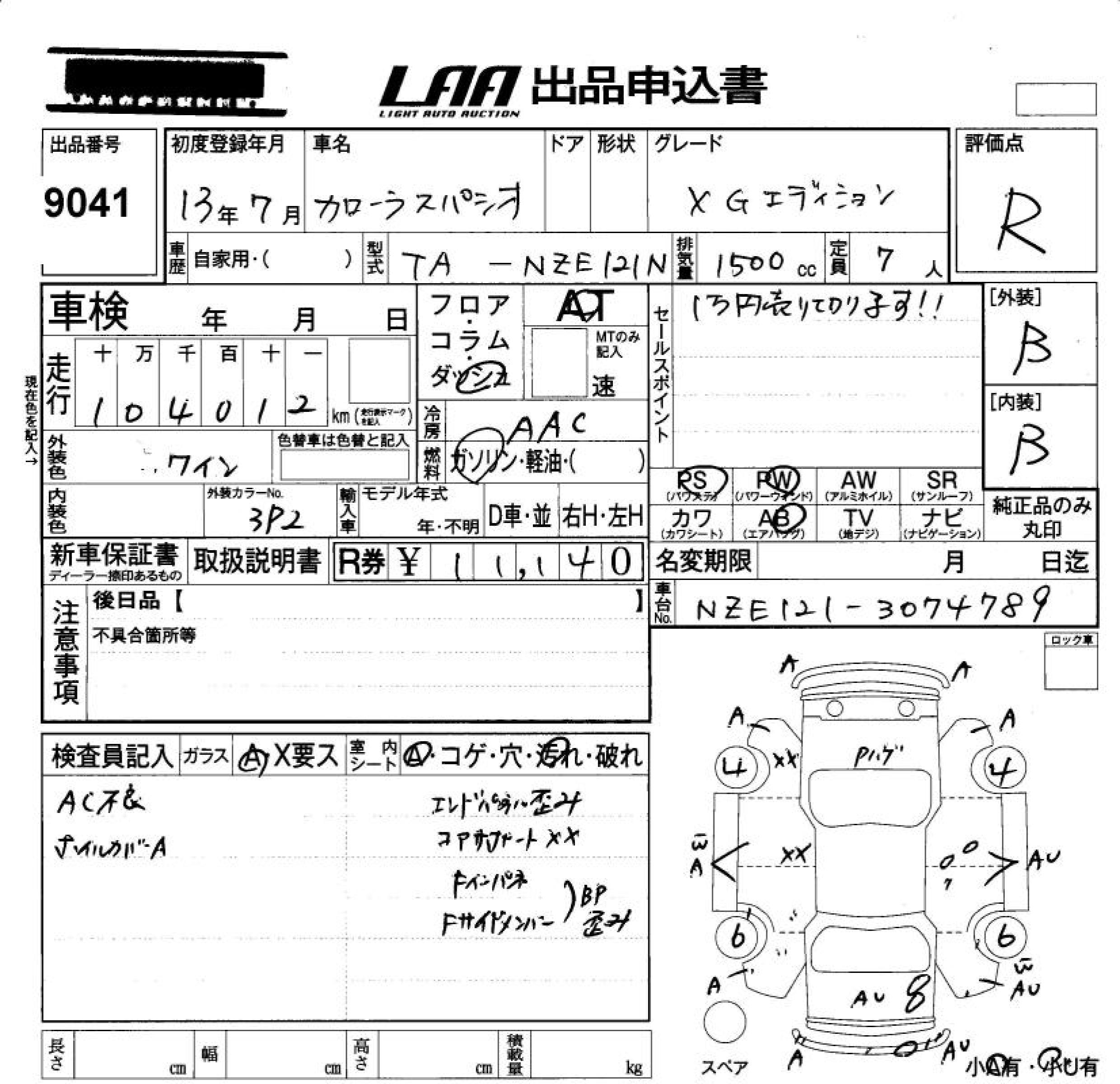 TOYOTA COROLLA SPACIO X G EDITION - лот 9041