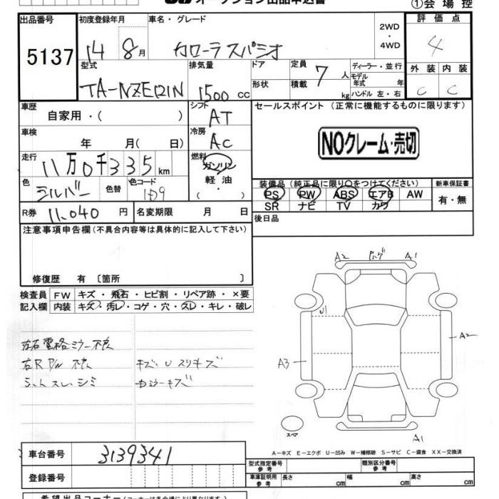 TOYOTA COROLLA SPACIO - лот 5137