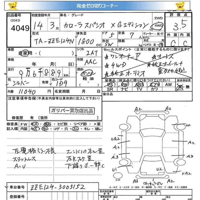 TOYOTA COROLLA SPACIO 4WD X G EDITION - лот 4049