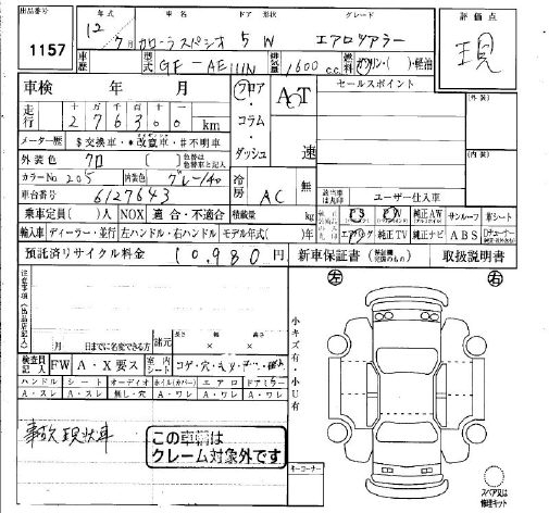 TOYOTA COROLLA SPACIO AERO TOURER - лот 1157