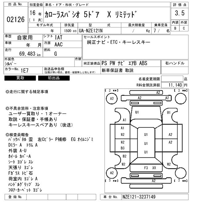 TOYOTA COROLLA SPACIO X LIMITED - лот 2126