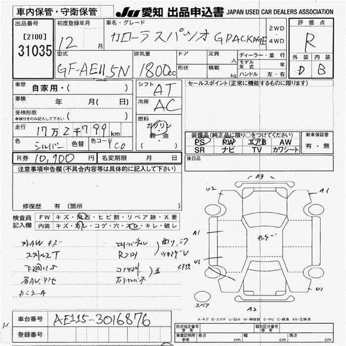 TOYOTA COROLLA SPACIO G PACKAGE - лот 31035