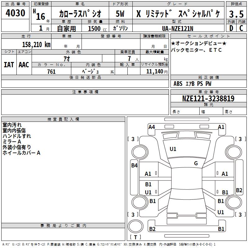 TOYOTA COROLLA SPACIO X LIMITED SPECIAL PACK - лот 4030
