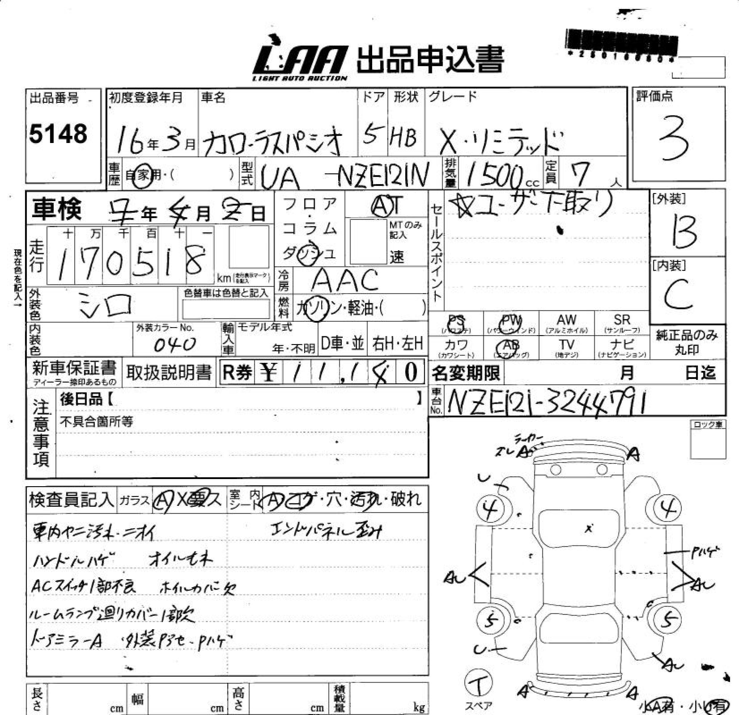 TOYOTA COROLLA SPACIO X LIMITED - лот 5148