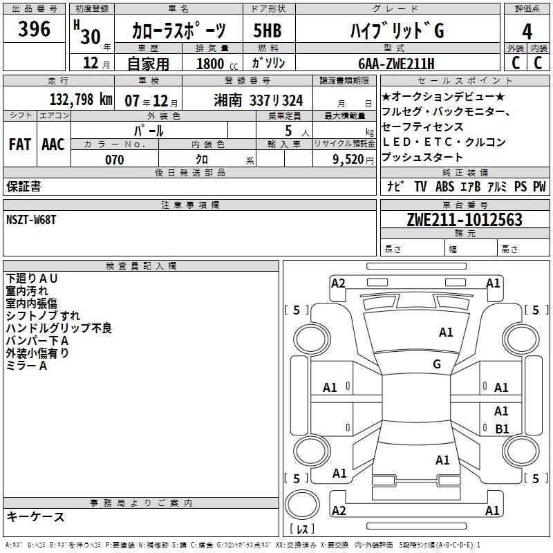TOYOTA COROLLA SPORT HYBRID G - лот 396