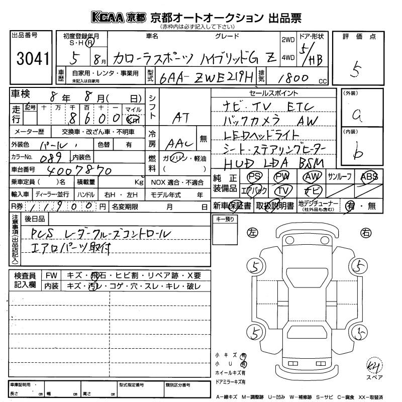 TOYOTA COROLLA SPORT HYBRID G Z - лот 3041