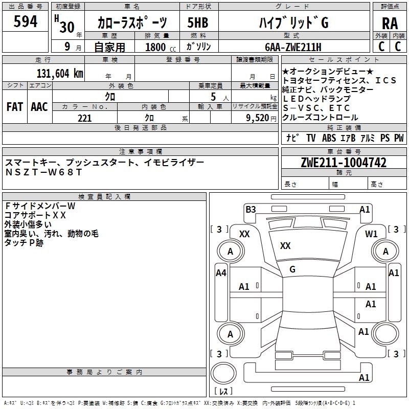 TOYOTA COROLLA SPORT HYBRID G - лот 594