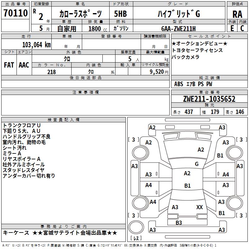 TOYOTA COROLLA SPORT HYBRID G - лот 70110