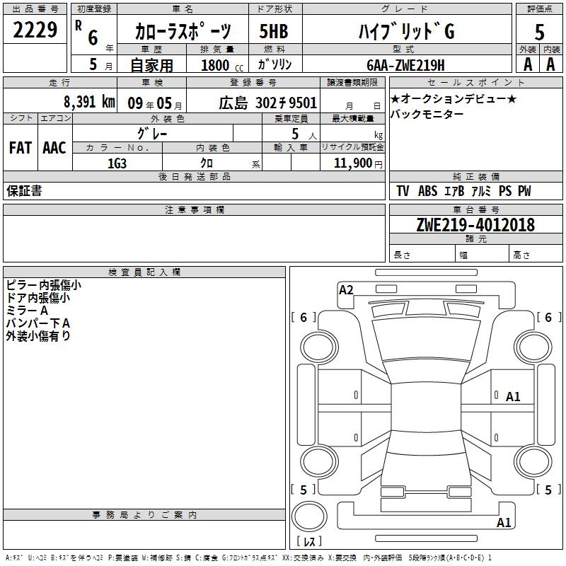 TOYOTA COROLLA SPORT HYBRID G - лот 2229