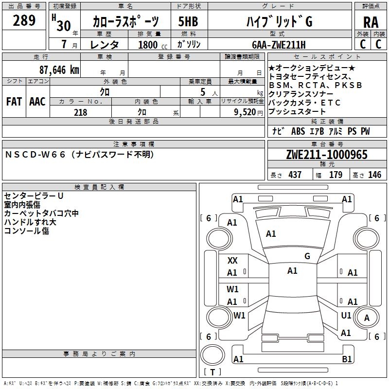TOYOTA COROLLA SPORT HYBRID G - лот 289