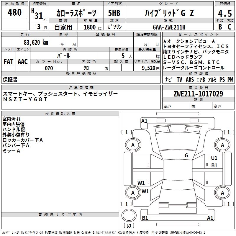 TOYOTA COROLLA SPORT HYBRID G Z - лот 480