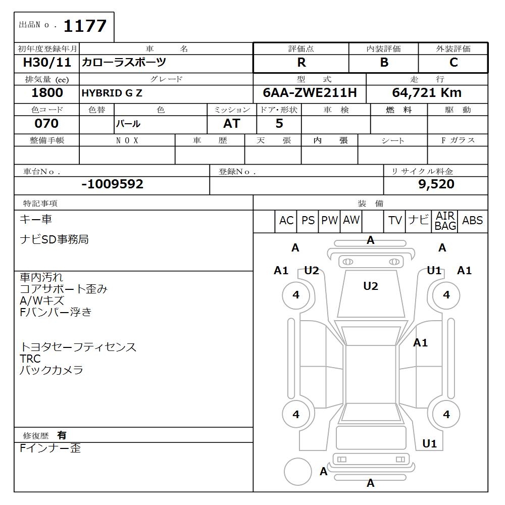 TOYOTA COROLLA SPORT HYBRID G Z - лот 1177