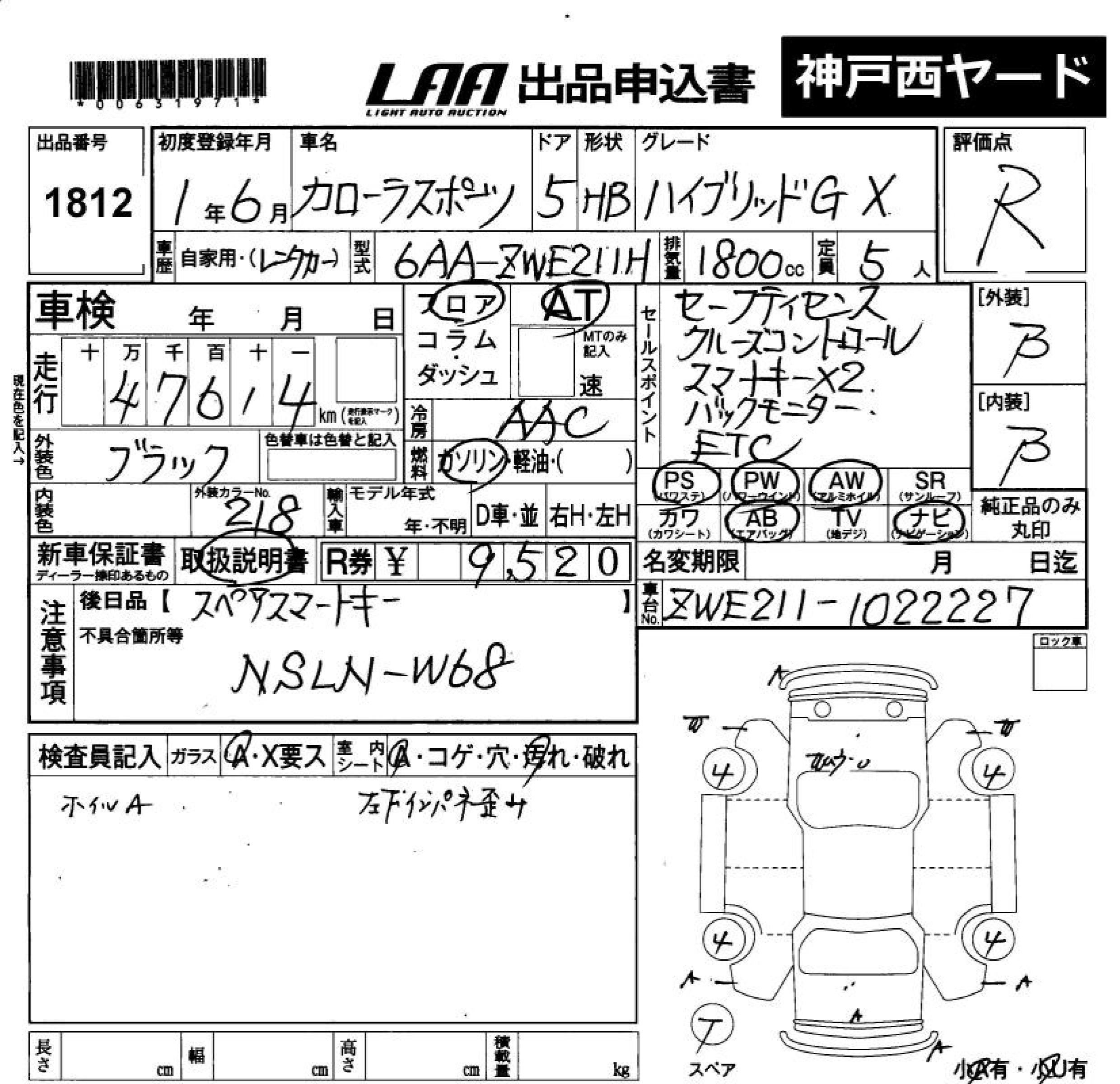 TOYOTA COROLLA SPORT HYBRID G X - лот 1812
