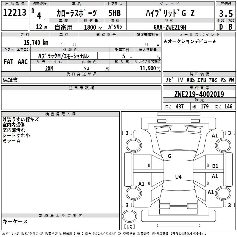 TOYOTA COROLLA SPORT HYBRID G Z - лот 12213